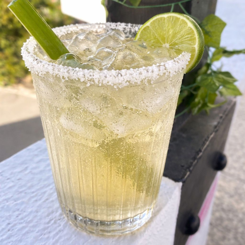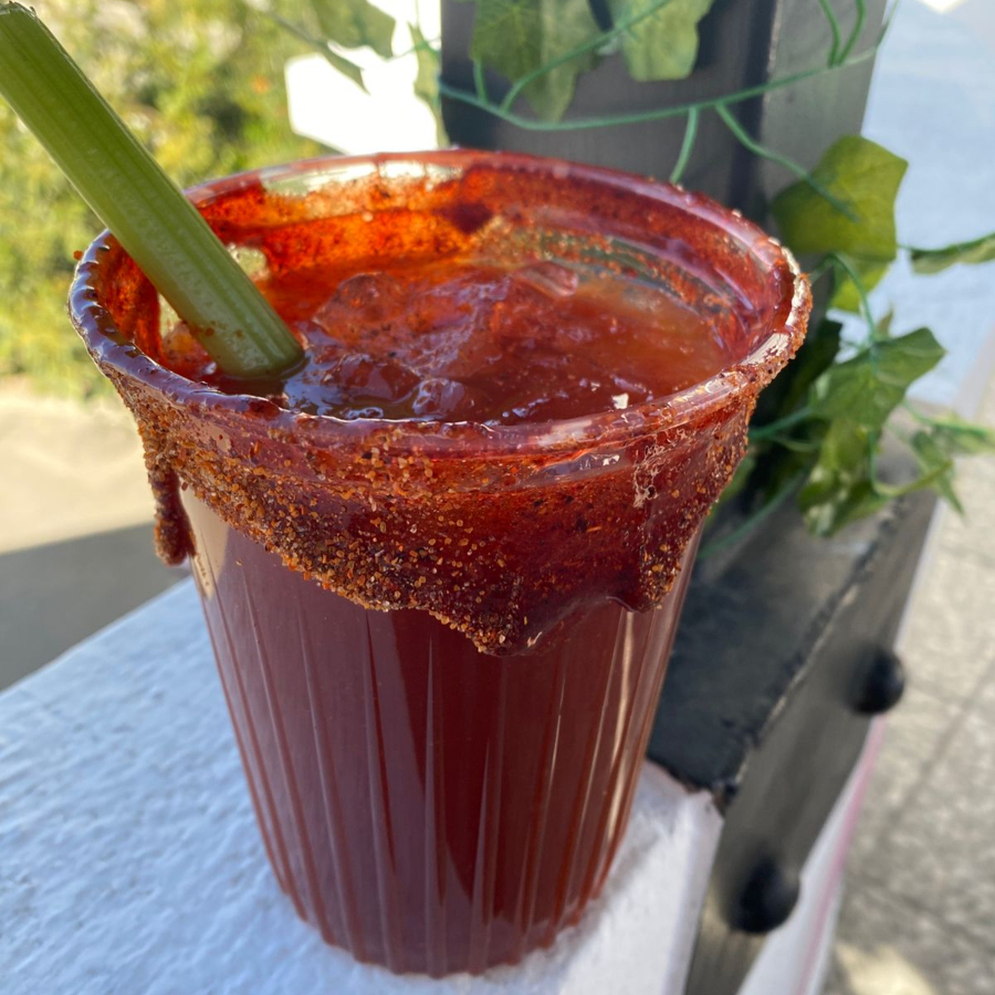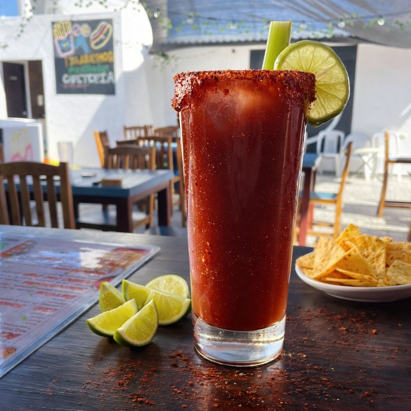 Salsas, limón y sal, apio, escarchado con tajín.