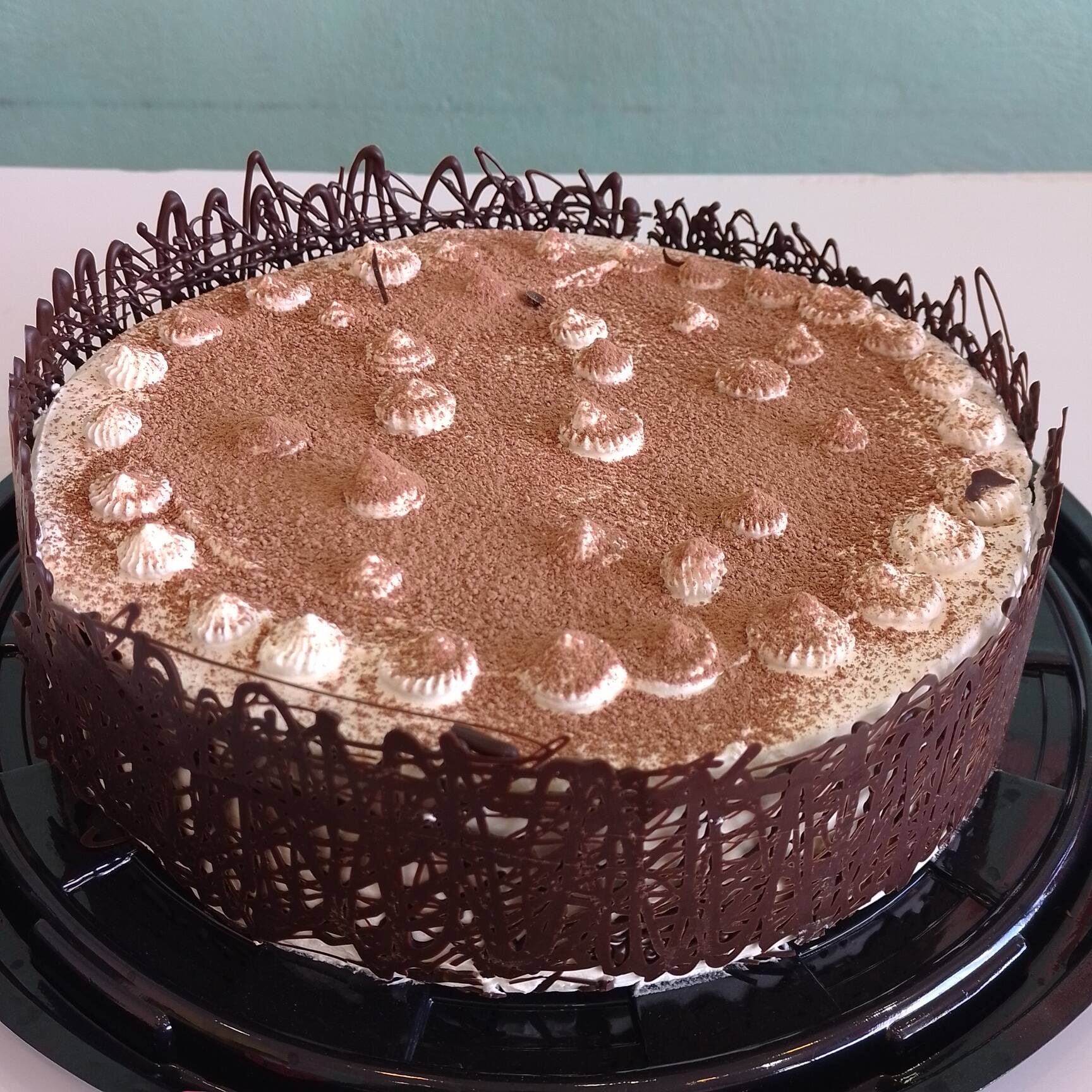 Pan de Vainilla Relleno de Crema de Mocca con Chispas de Chocolate Humectado En Tres Leches