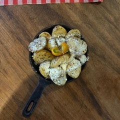 Papas rusticas con aceite de trufa negra y queso parmesano urugayo rallado