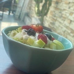 Frutas de temporada acompañada con miel y granola