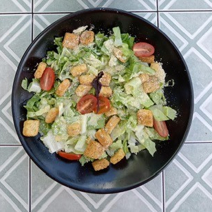 Lechuga baby con crotones de la casa, parmesano uruguayo rallado y aderezo de la casa