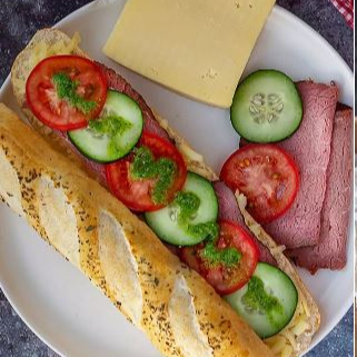 O también llamado bagette tipo Viena, a partir de nuestro pan preparado con nuestra masa artesanal, con Jamón de alta calidad y bajo en grasa, una capa de queso asadero, jitomate, pepino y aderezo pesto de la casa, podrás disfrutar una combinación fresca.