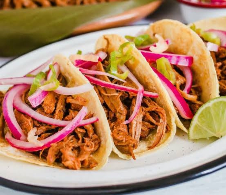 Con frijoles, salsa, cebolla morada curtida y tortillas hechas a mano
