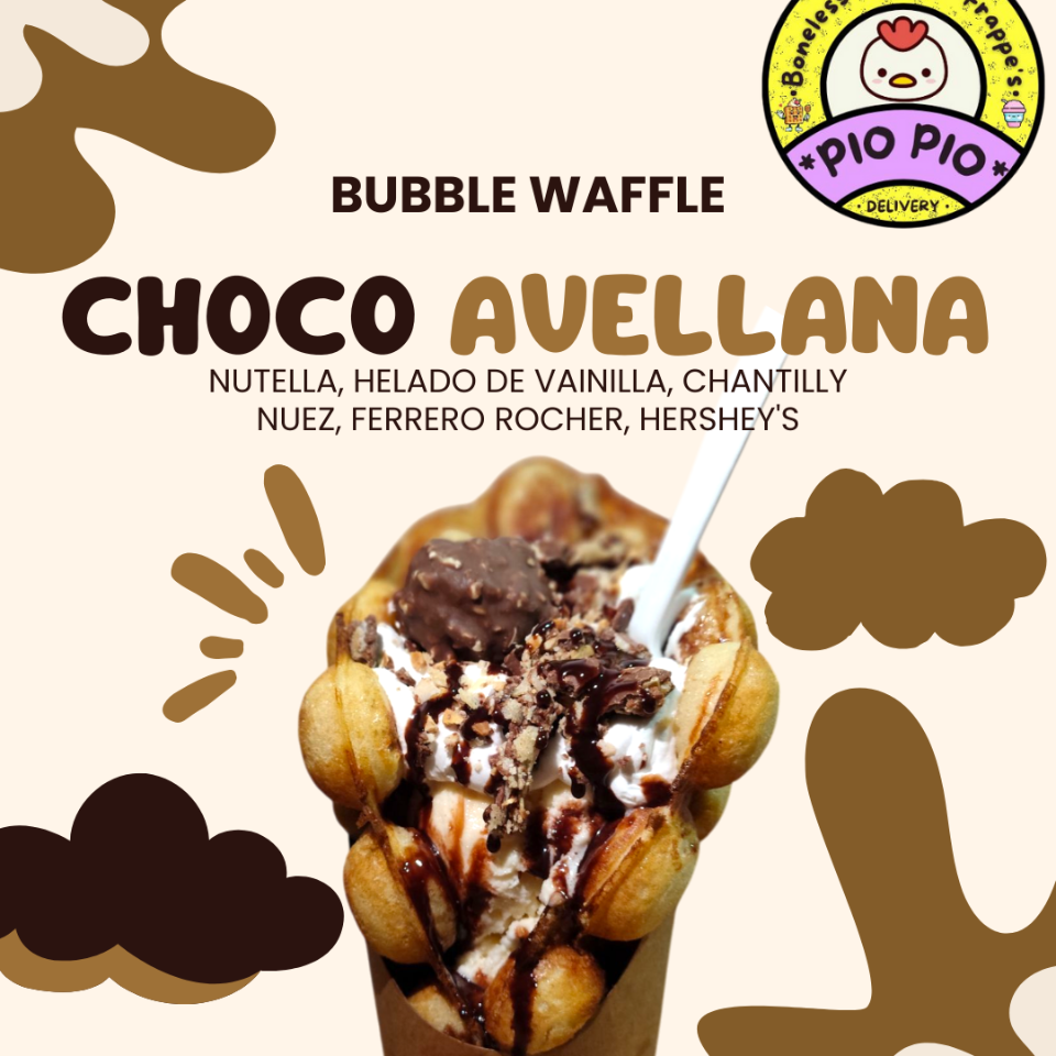 Waffle calientito con base de Nutella, helado de vainilla, crema batida, chocolate Ferrero, nuez y hersheys