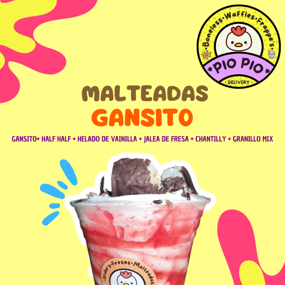Deliciosa malteada de Gansito con jalea de fresa, crema batida y chispas de chocolate