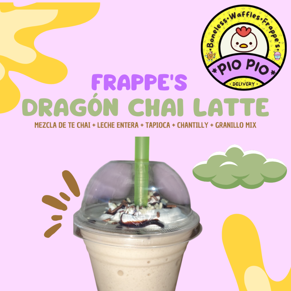 Delicioso frappe de Té Chai con helado de vainilla, leche, crema batida, hersheys y chispas de chocolate
