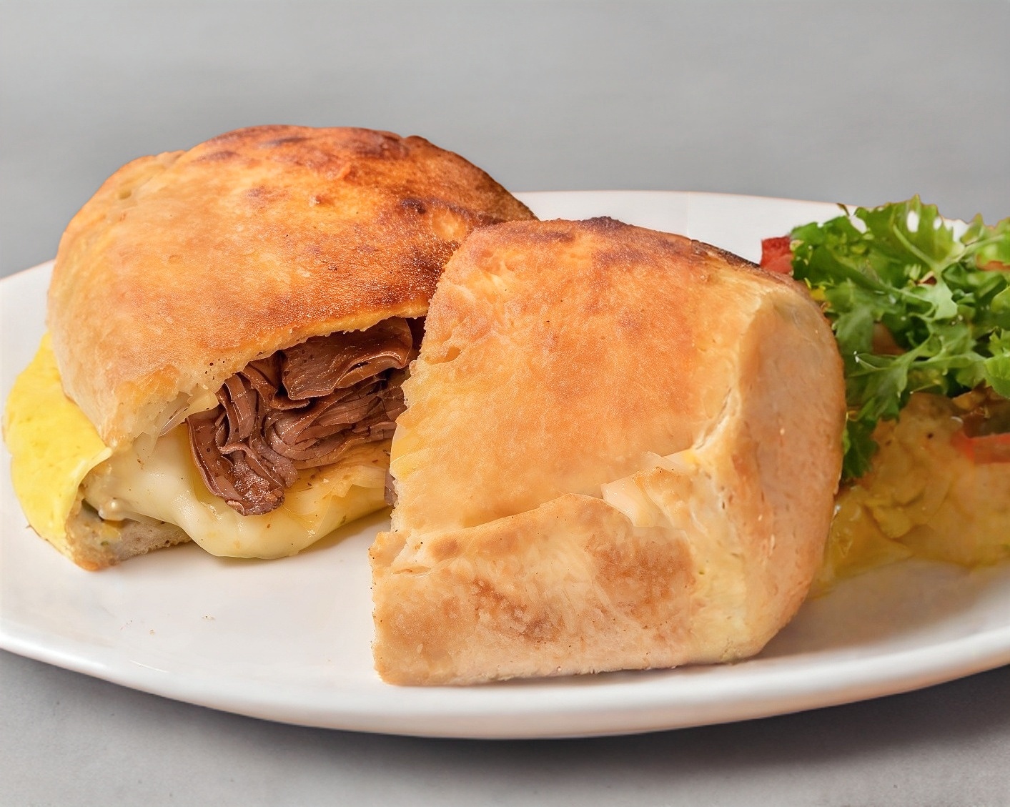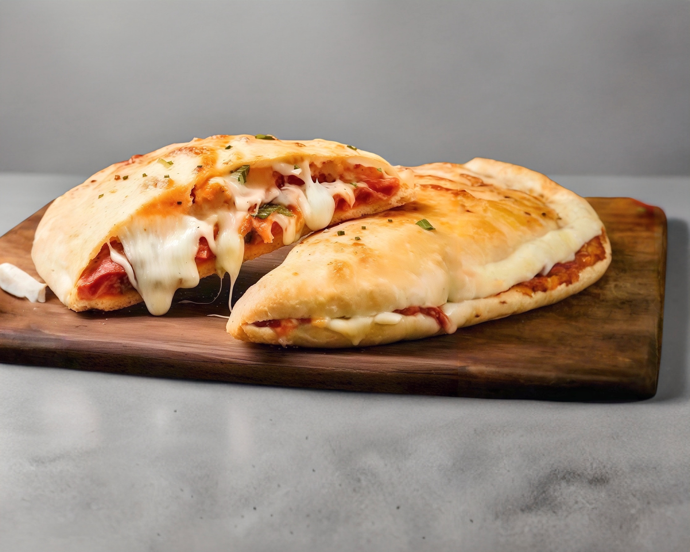 Rico pan relleno de salsa pomodoro, queso y pepperoni