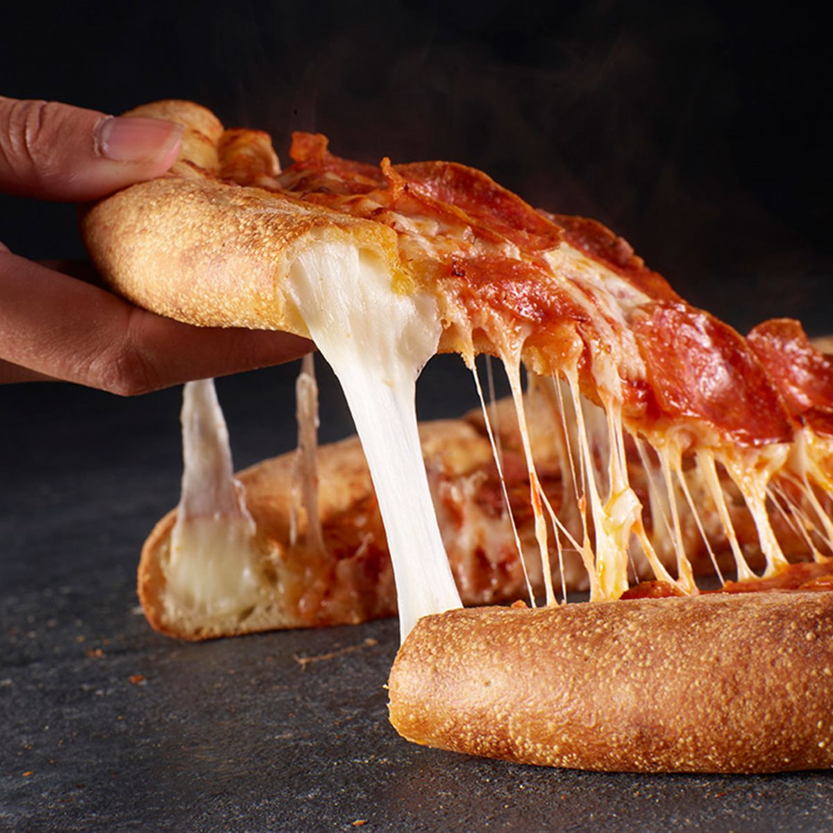 Deliciosa pizza de pepperoni con orilla rellena.