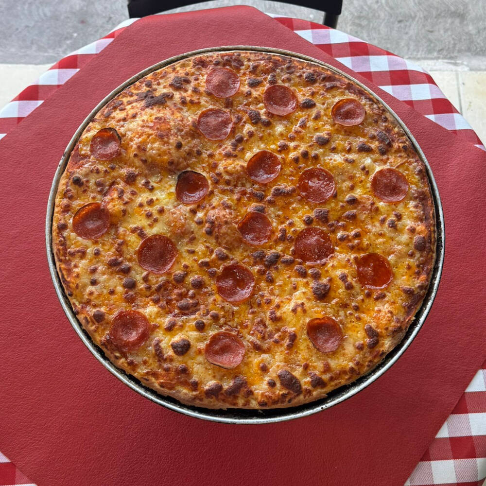 Pizza familiar de 40 cm con generosas porciones de pepperoni y queso mozzarella.