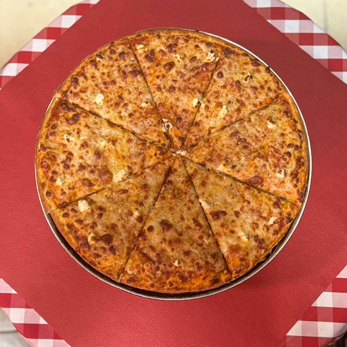 Pizza familiar de 40 cm con mezcla intensa de gouda, cheddar, mozzarella y queso crema.