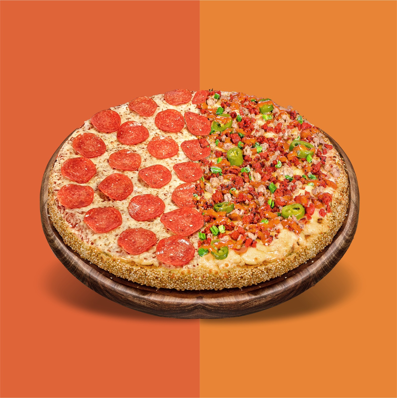 Pizza familiar de 12 rebanadas PEPEYORK Mitad Peperoni Mitad Yorker