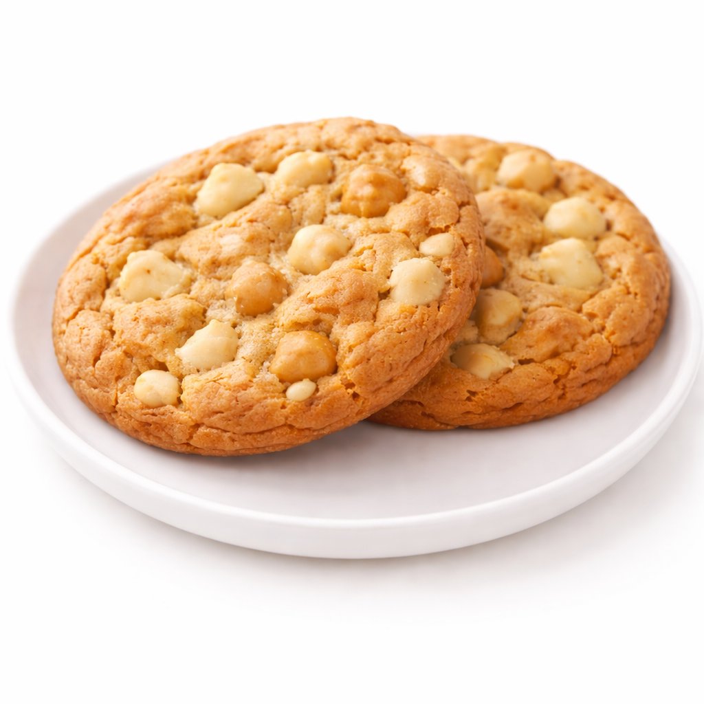 Par de galletas mantequillosas con nuez de macadamia. Ideales para acompañar tu café o como antojo dulce.