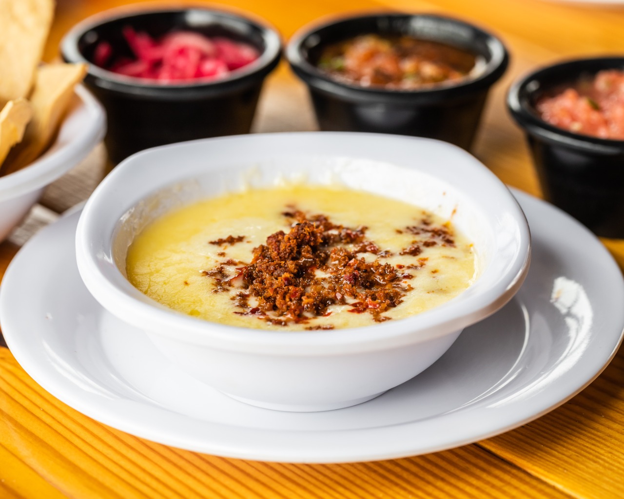 Incluye salsa de molcajete, cebolla asada, tortillas, chiles toreados y totopos.