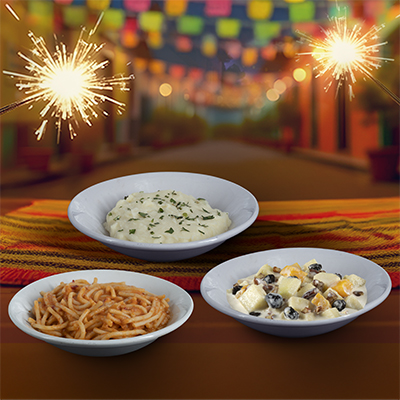 500 gr de ensalada de manzana, 500 gr de puré de papa y 500 gr de espageti rojo