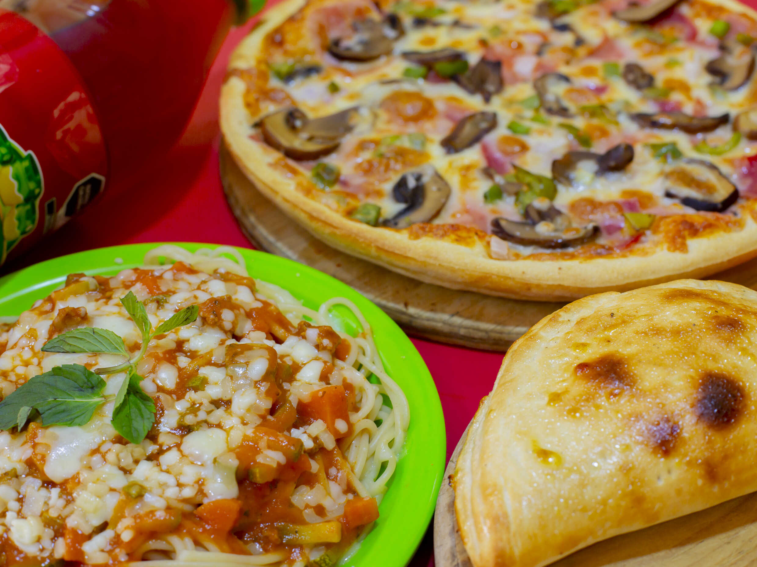 Spaguetti a la Bolognesa*2 + Refresco 2 Lts Sabor a Disponibilidad en Tienda*1 + Pizza Familiar de Especialidad*1