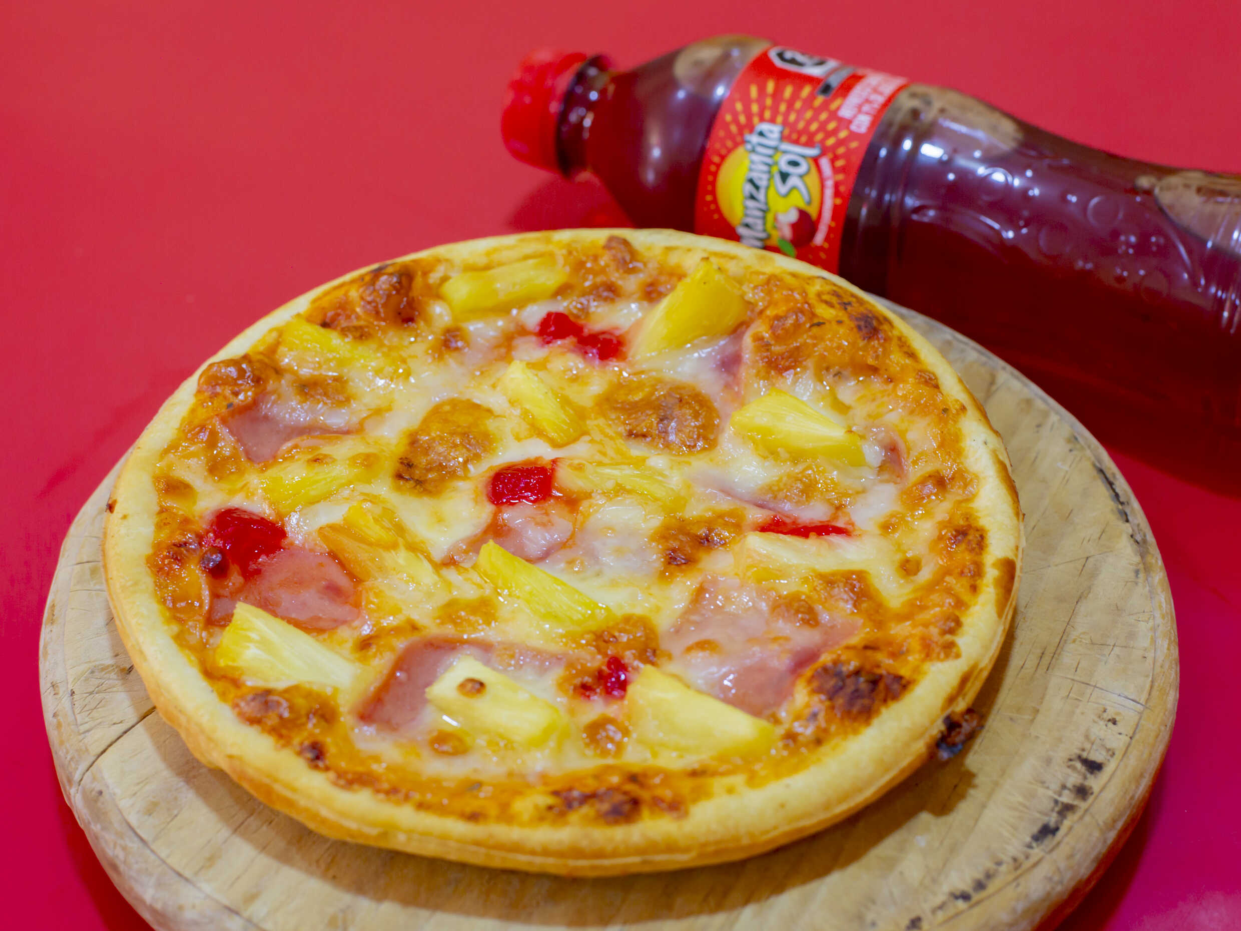 1 Pizza chica de 1 a 4 ingredientes y 1 refresco chico, sabor a disponibilidad en tienda.