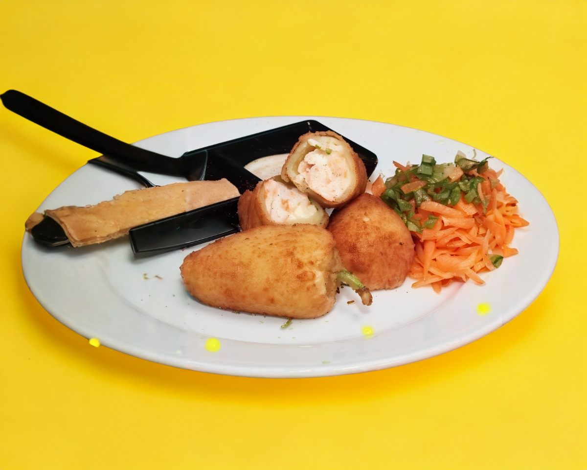 Rollo empanizado rellenos de aguacate, queso crema, pollo y tocino.