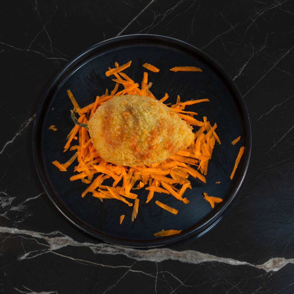 Chile caribe empanizado y relleno de tampico, queso crema y queso chihuahua. (2pzs)