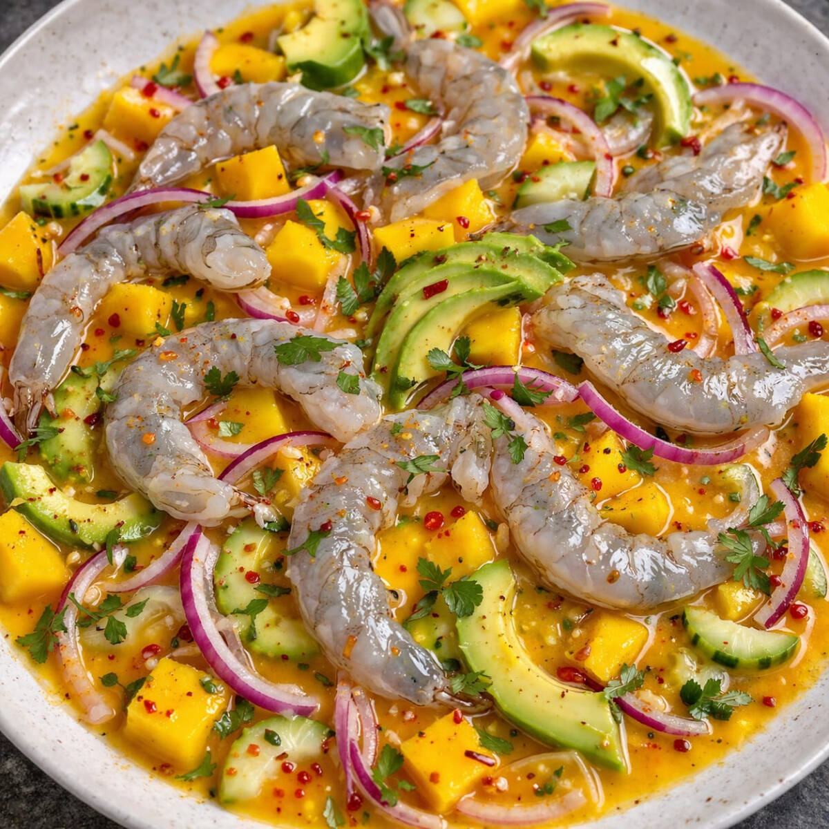 500ml Aguachile de Camarón en Salsa de Mango.