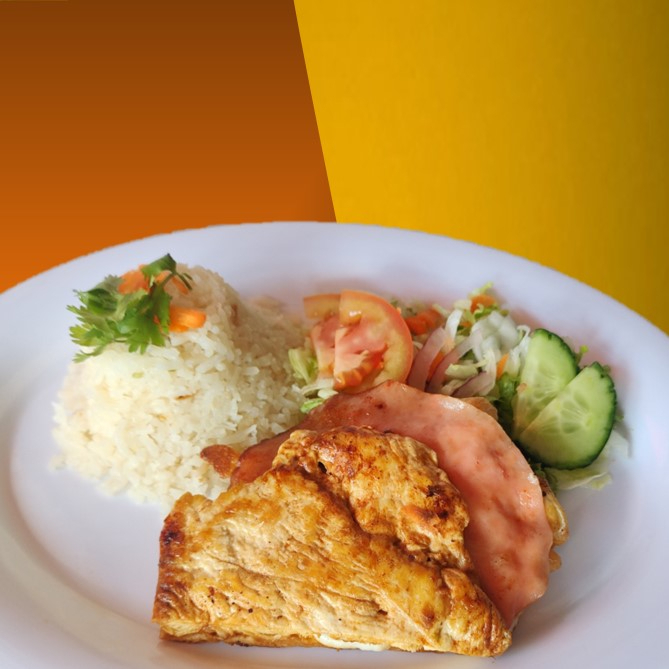Acompañado de arroz y ensalada.