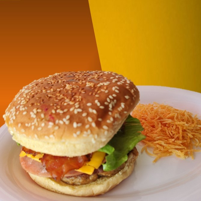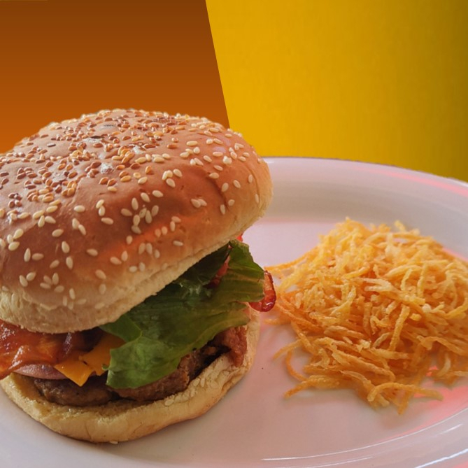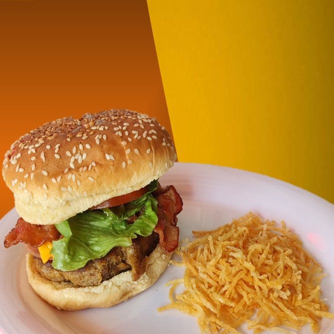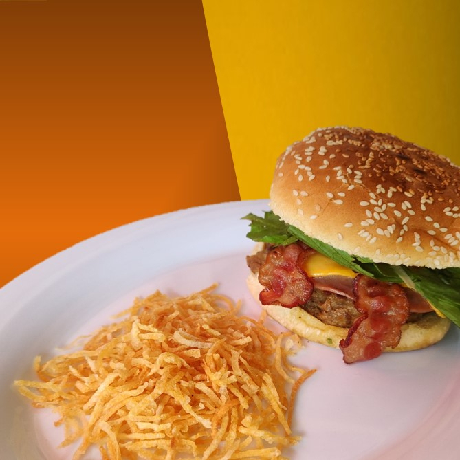Hamburguesa con Tocino y Papas Fritas (Paja)