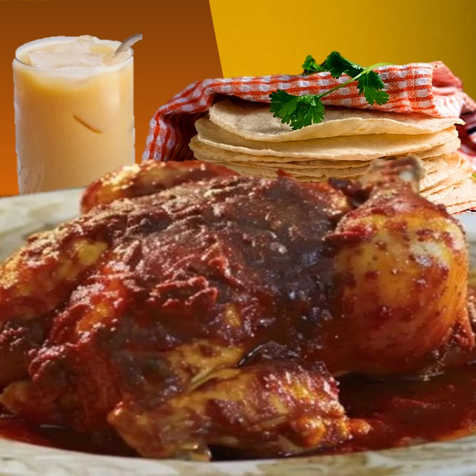 Pollo En Barbacoa con Tortillas y Agua de Fruta