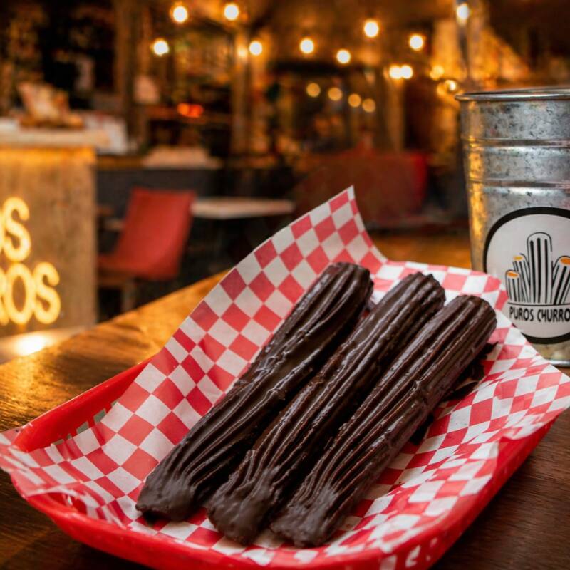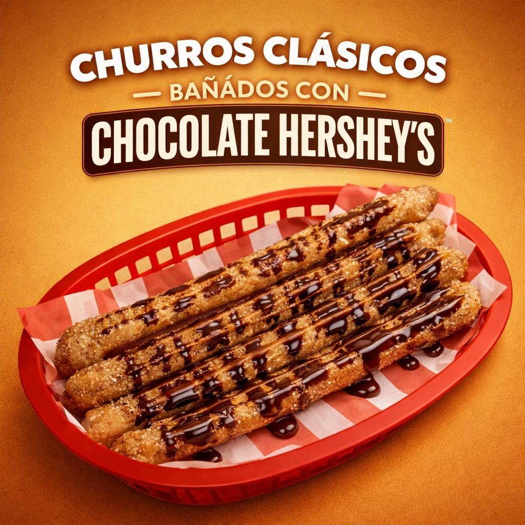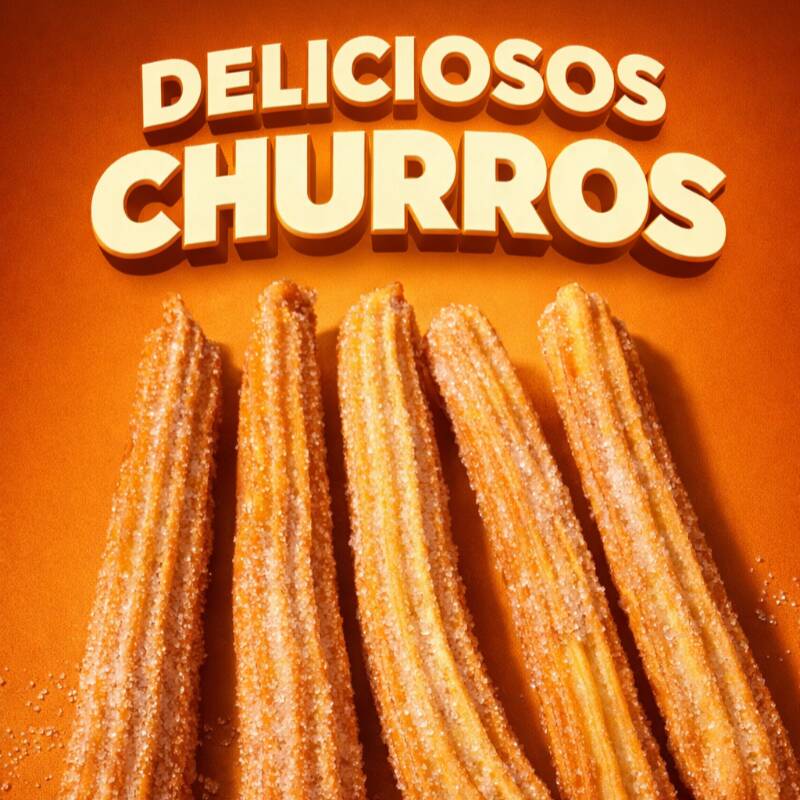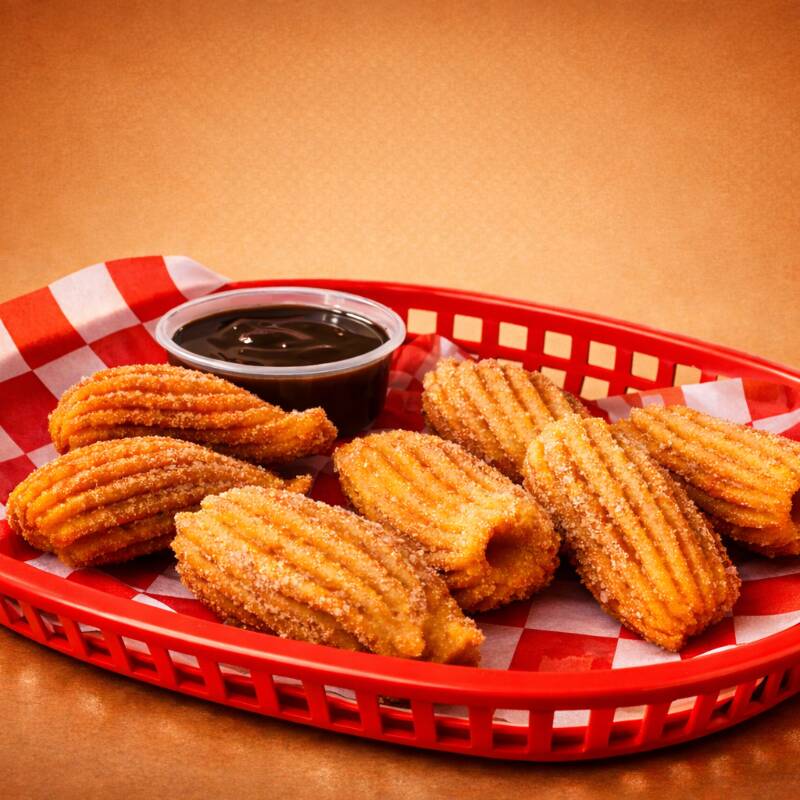 4 churros recién hechos, acompañados de un dip a tu elección para bañarlos a tu gusto. Crujientes por fuera, suaves por dentro y llenos de sabor.