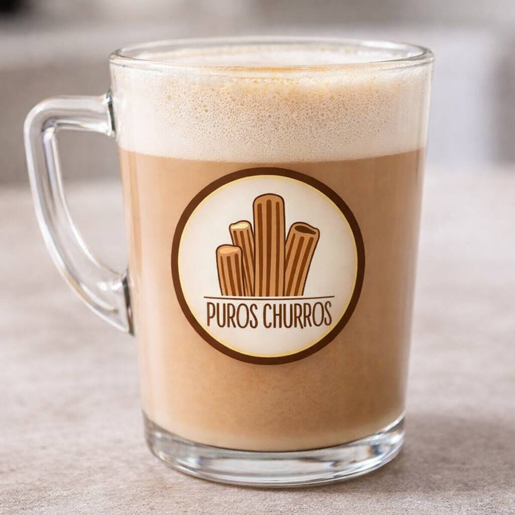 Capuchino cremoso con espuma suave, servido en vaso de 12 oz. Perfecto para acompañar tus churros. Todas nuestras bebidas se preparan con leche deslactosada