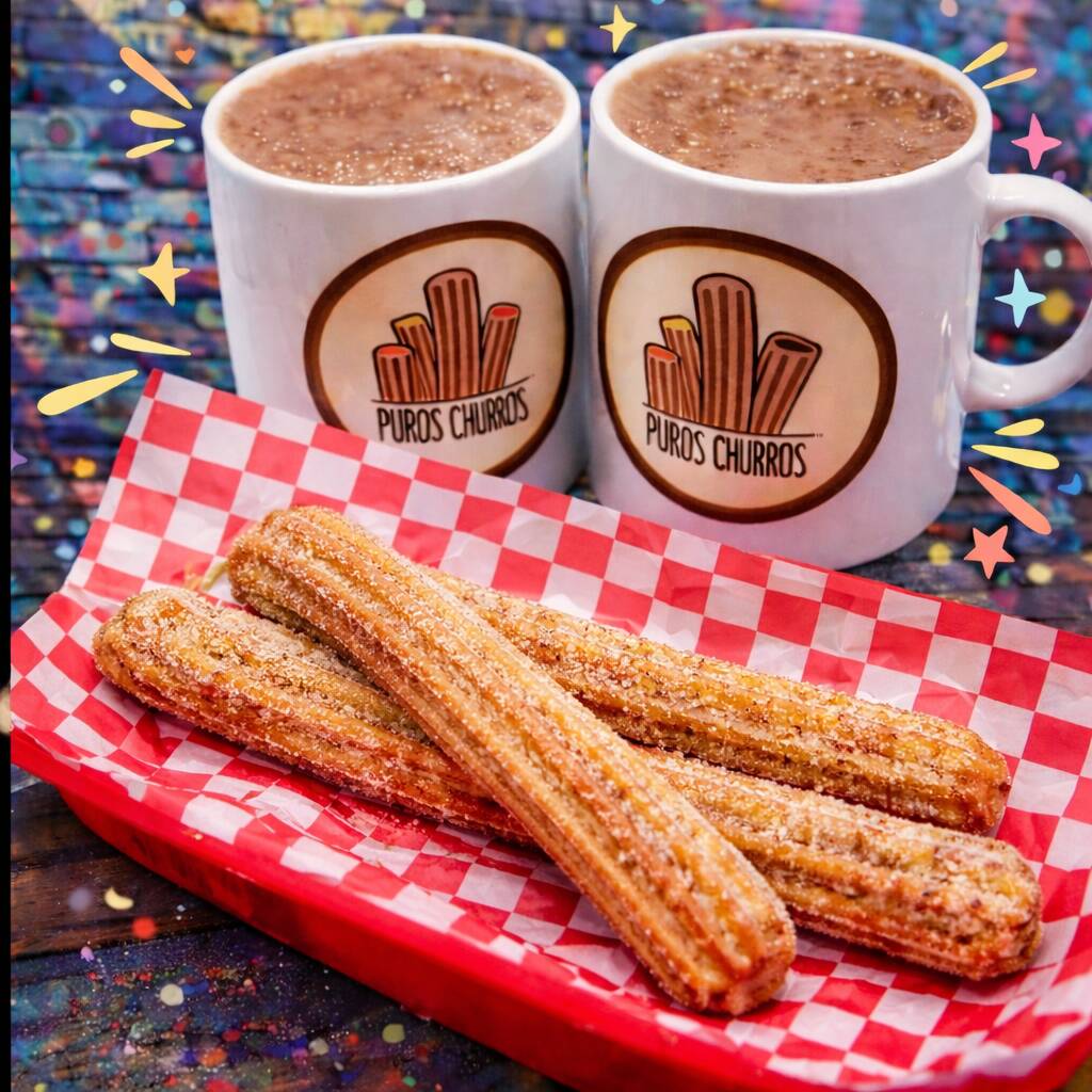 3 churros clasicos recien hechos y 2 chocolates calientes de 12 oz con preparacion a elegir. La combinacion perfecta para disfrutar algo dulce, calientito y delicioso en cualquier momento.