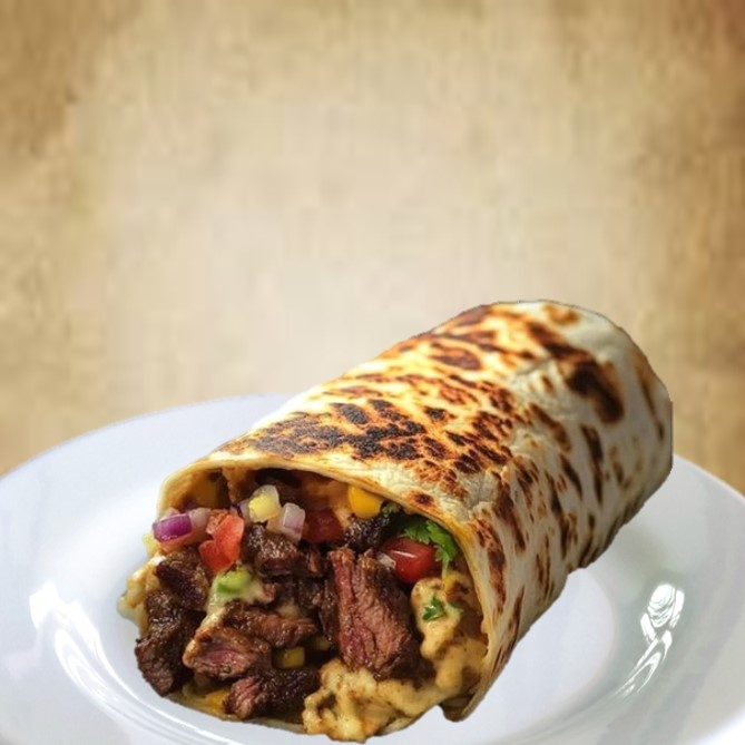 Hamburguesa con Arrachera y Papas Fritas (Paja)