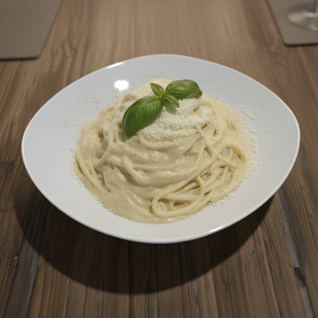 Pasta bañada en una cremosa salsa Alfredo de mantequilla, crema y queso parmesano, con un toque de ajo.