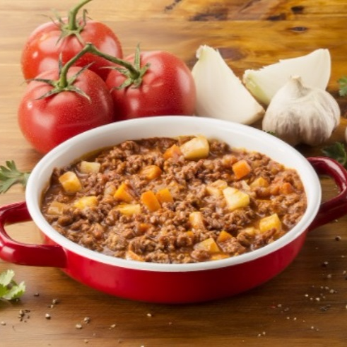 Carne molida sazonada con salsa roja con verduras en envase 500g. Incluye Tortillas y Salsa de la Casa