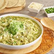Pollo deshebrado sazonado en mole verde con nopales en envase de 500ml. Incluye Tortillas y Salsa de la Casa