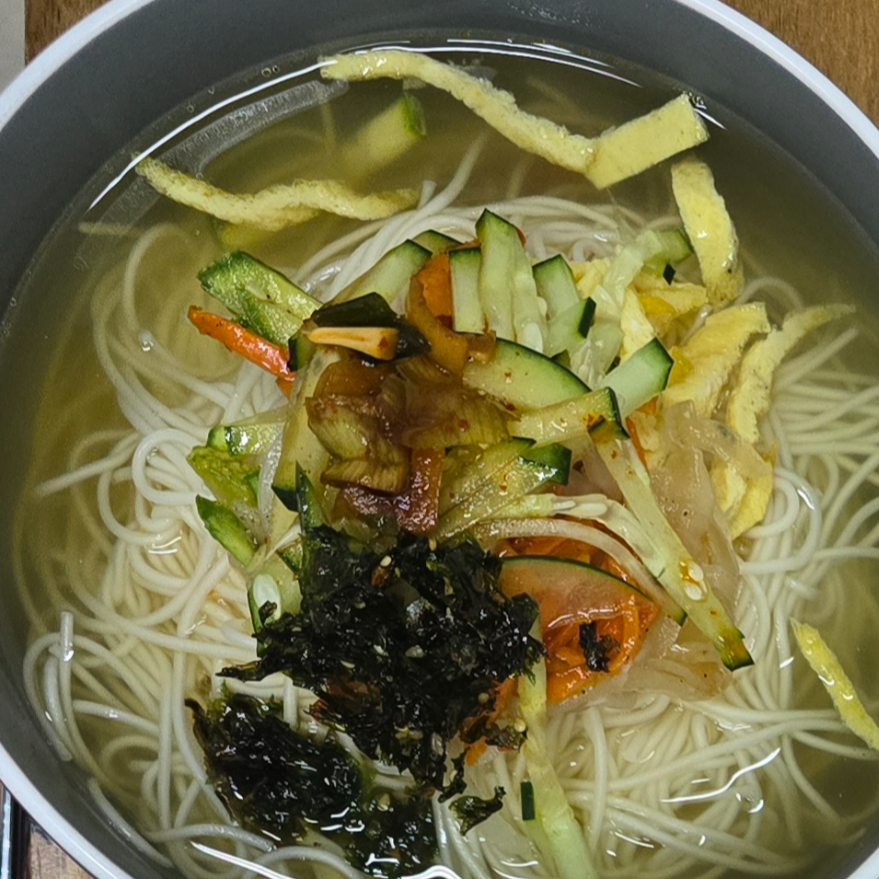Fideos en caldo añadido de sabroso kimchi fermentado, de sabor picante y auténtico coreano