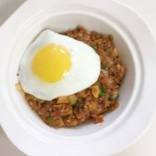 ARROZ FRITO CON KIMCHI CUBIERTO CON HUEVO ESTRELLADO