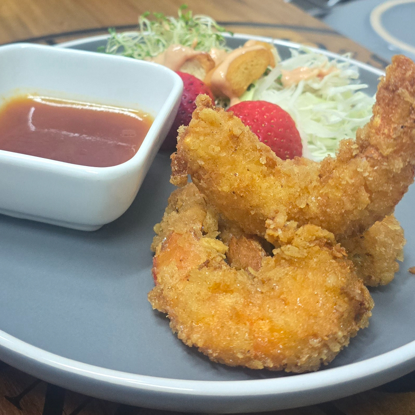 Camarones empanizados con salsa especial y ensalada