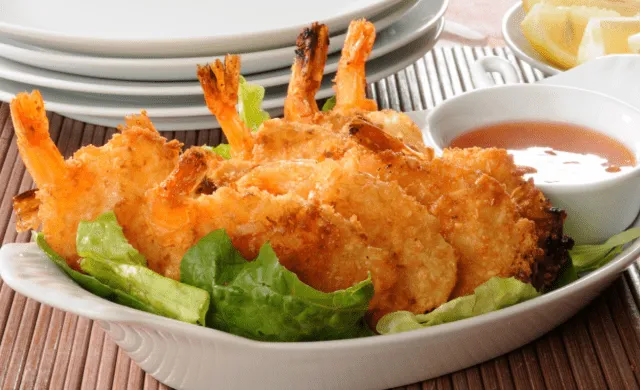 Camarones con queso, tocino y cebolla caramelizada en tortilla de harina.