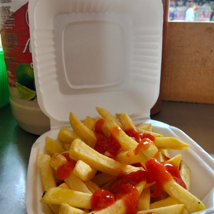 Papas, catsup, salsa y mostaza