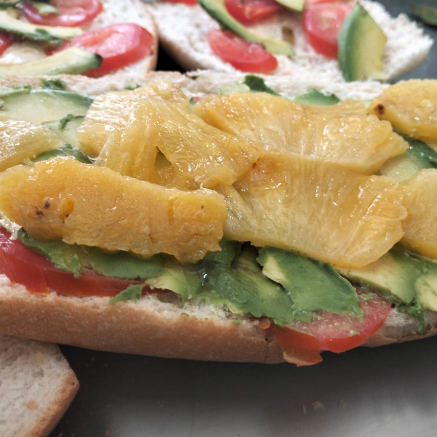 Milanesa, piña, queso, aguacate, jitomate, cebolla y salsa