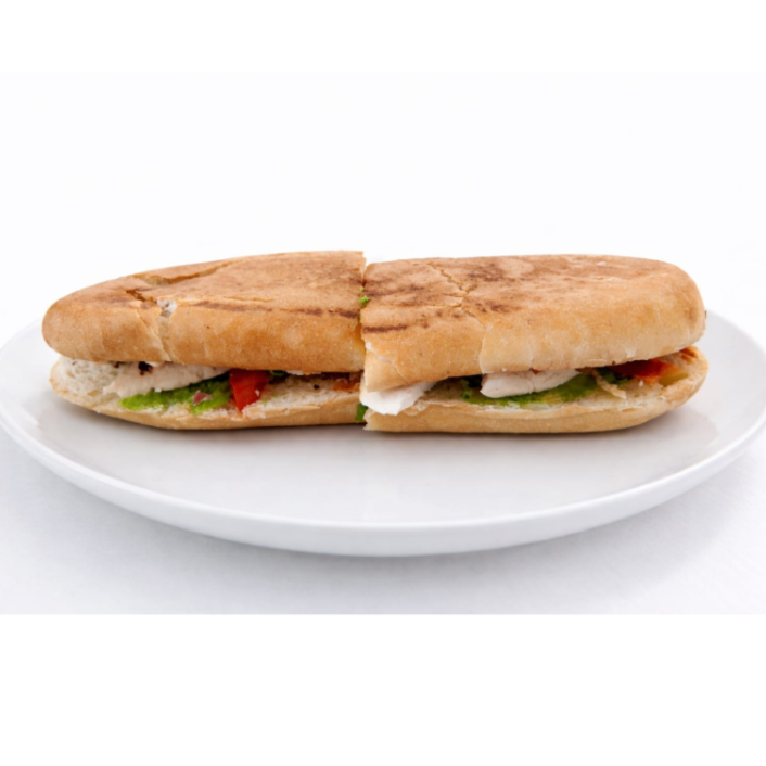 Pierna, huevo, queso panela y queso amarillo (cebolla, jitomate, aguacate, salsa chipotle agridulce, mantequilla y mayonesa)