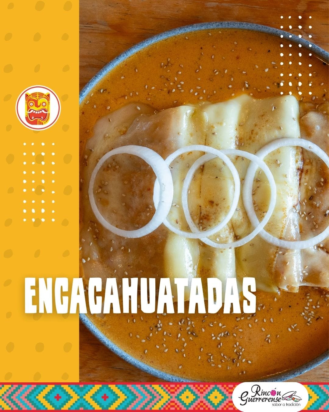 4 enchiladas rellenas de pollo bañadas con nuestra salza de cacahuates, gratinadas y coronadas con rodajas de cebolla y un toque de ajonjoli.
