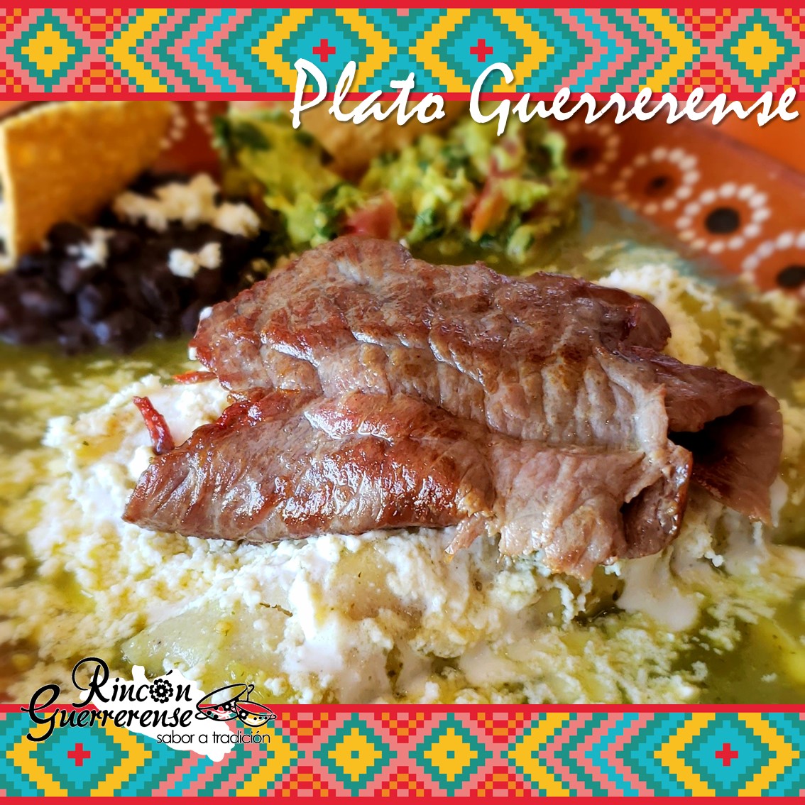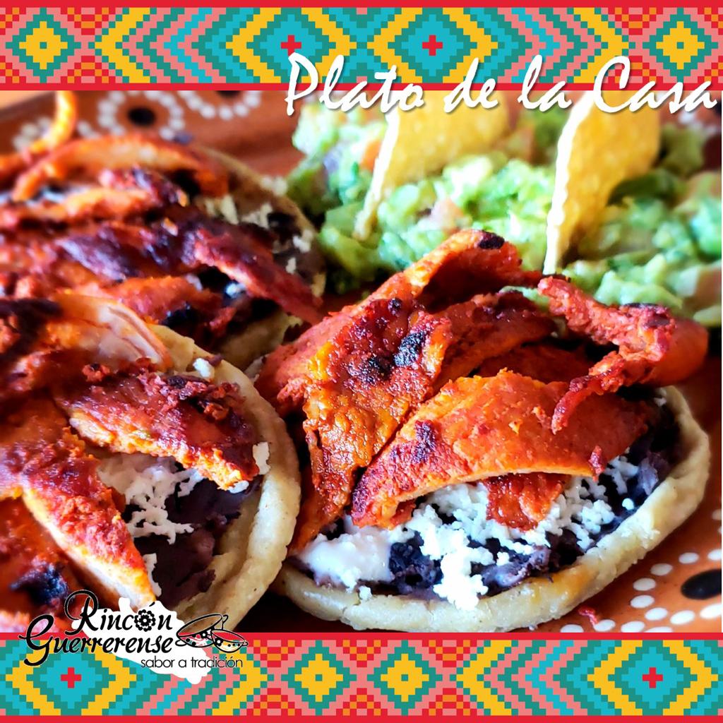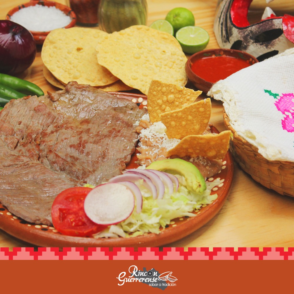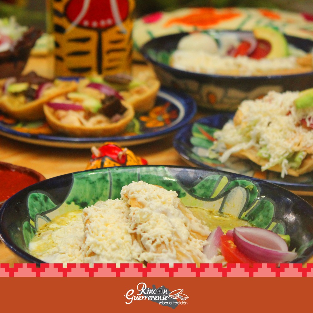 Estilo guerrero, preparado con carne de cerdo, se acompaña con aguacate, doradas, chicharrón, cebolla, limón y chile.