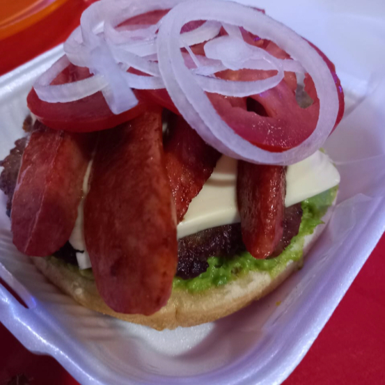 Doble carne, salchicha, tocino, Jamón, Queso B y A, lechuga, jitomate, aguacate, cebolla, chile, mostaza, mayonesa, catsup.