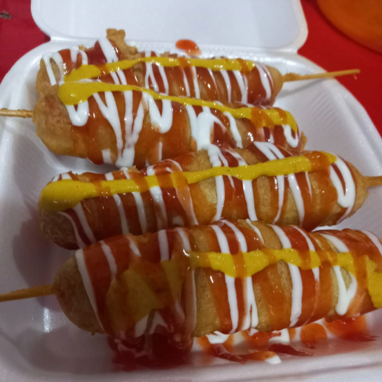 SALCHICHA CAPEADA FRITA, Catsup, Mayonesa y Mostaza.