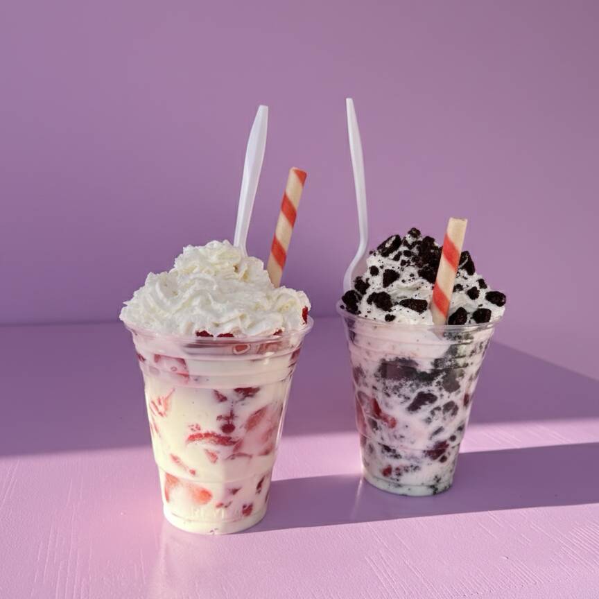 fresas con crema en vaso de 16 oz con galleta oreo