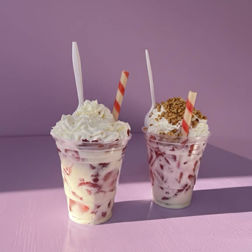 Fresas con crema en vaso de 16 oz con nuez trozeada