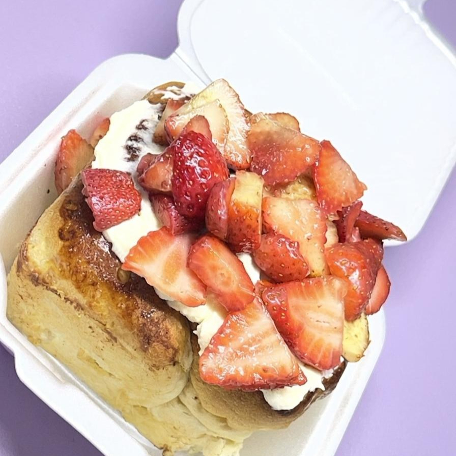 Roll de canela con fresa y durazno