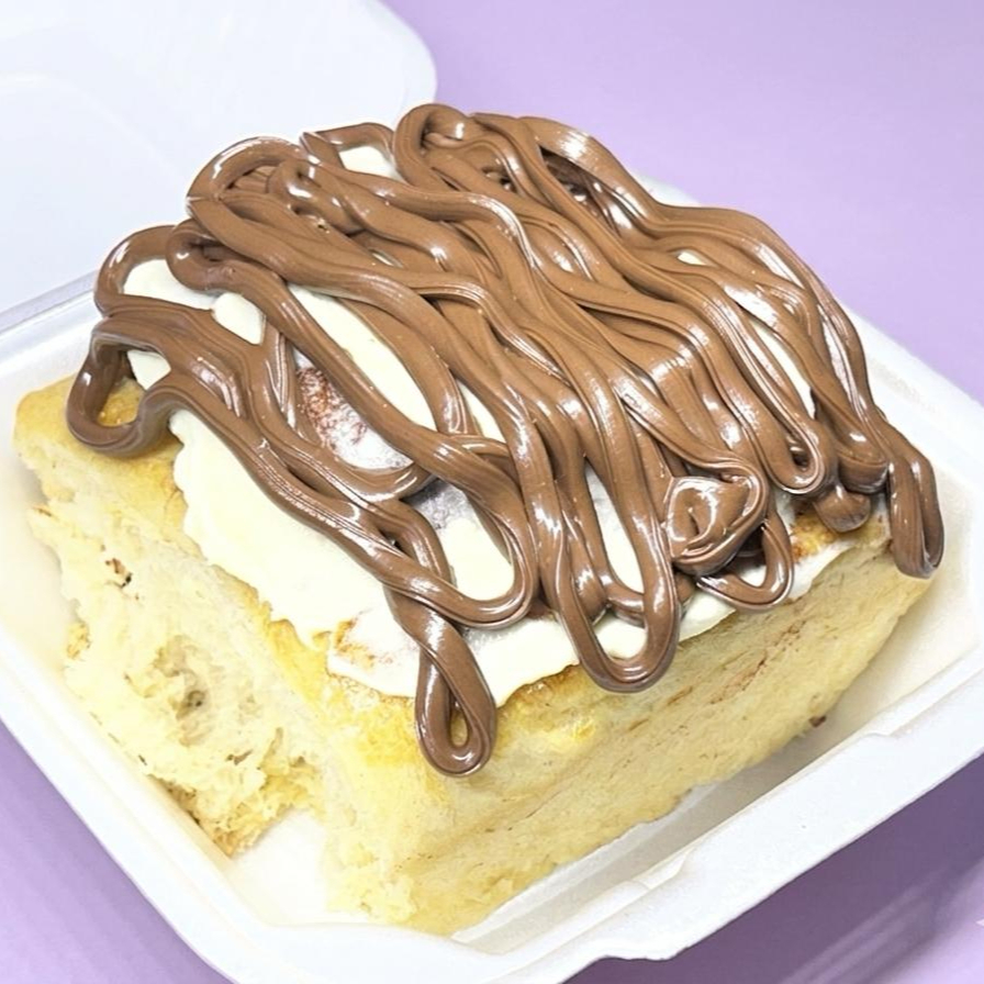 Roll de canela bañado en tres leches con nutella