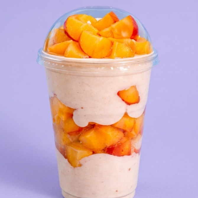 Duraznos troceados con crema vaso 16oz