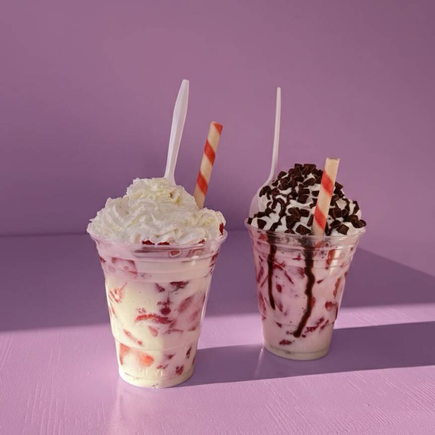 Fresas con crema en vaso de 16 oz con chocolate Turin